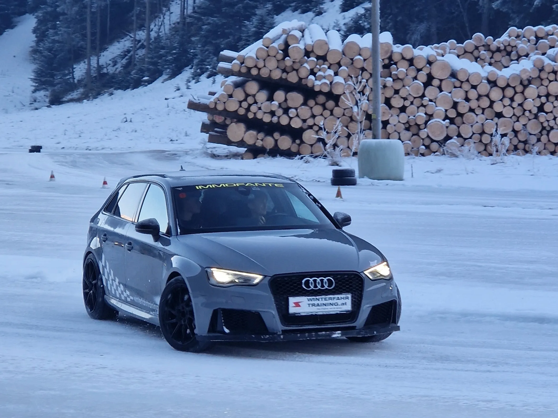 Im Dezember ging es auch in die Audi RS 3 Ice & Snow Experience in Muhr im Lungau. Im 400-PS-Boliden beim Winterfahrtraining mit Reini Sampl ist das Ziel, in kontrollierter Umgebung Fahrsicherheit zu erlangen. Um im Ernstfall auch im Straßenverkehr besser gewappnet zu sein.